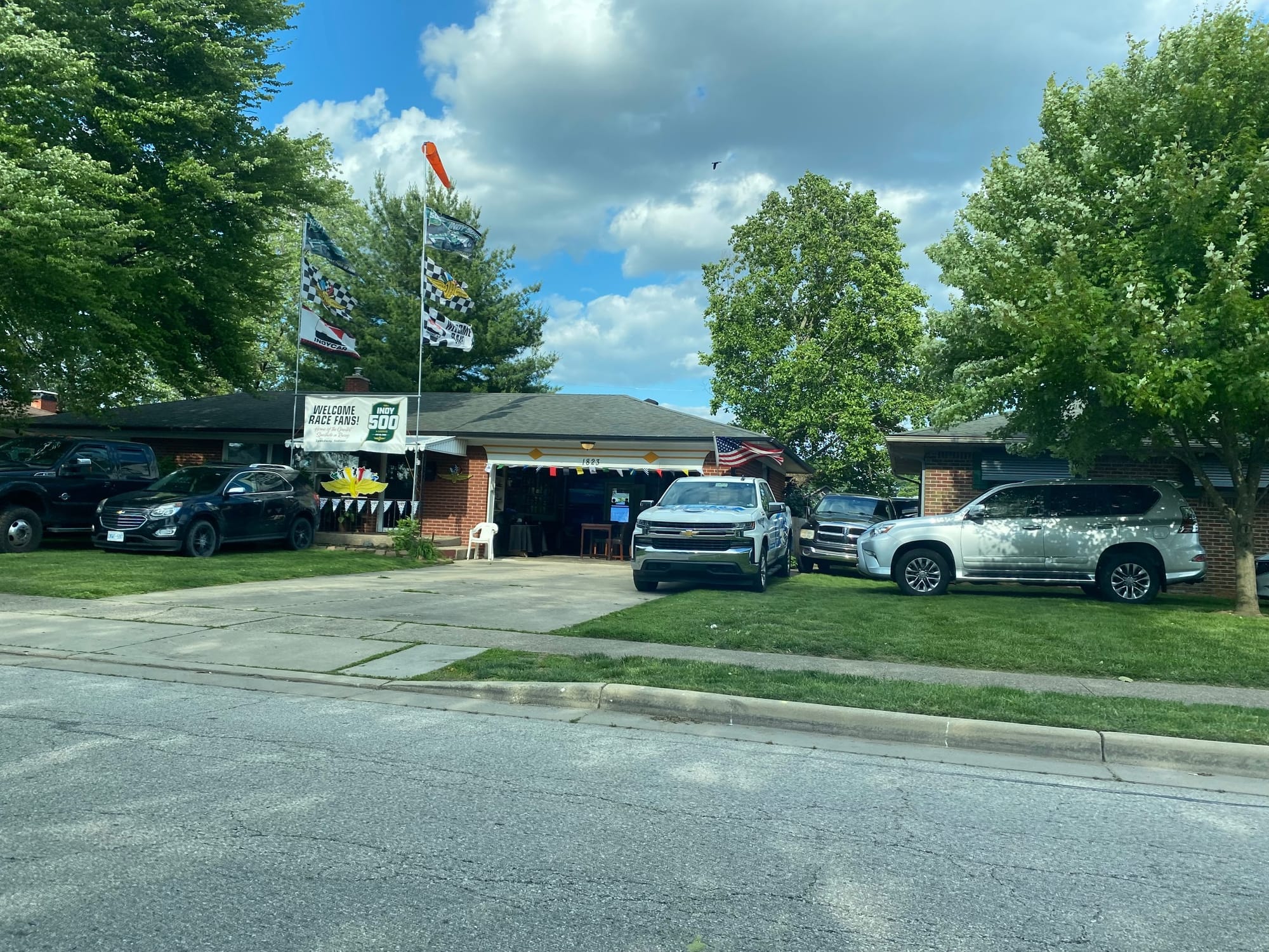 The obligatory ‘Welcome Race Fans’ banners adorn houses all around the Speedway.