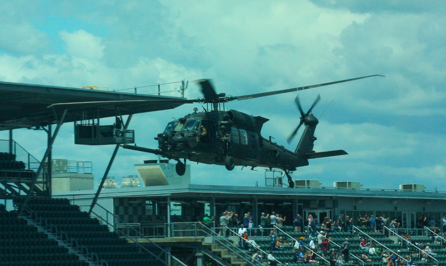 Rehearsals for flyovers took place on Carb Day with a few US Air Force jets screaming overhead, but the sight of the 38th Combat Aviation Brigade highlighting two Black Hawk helicopters only a hundred feet or so off the main straight was a highlight.