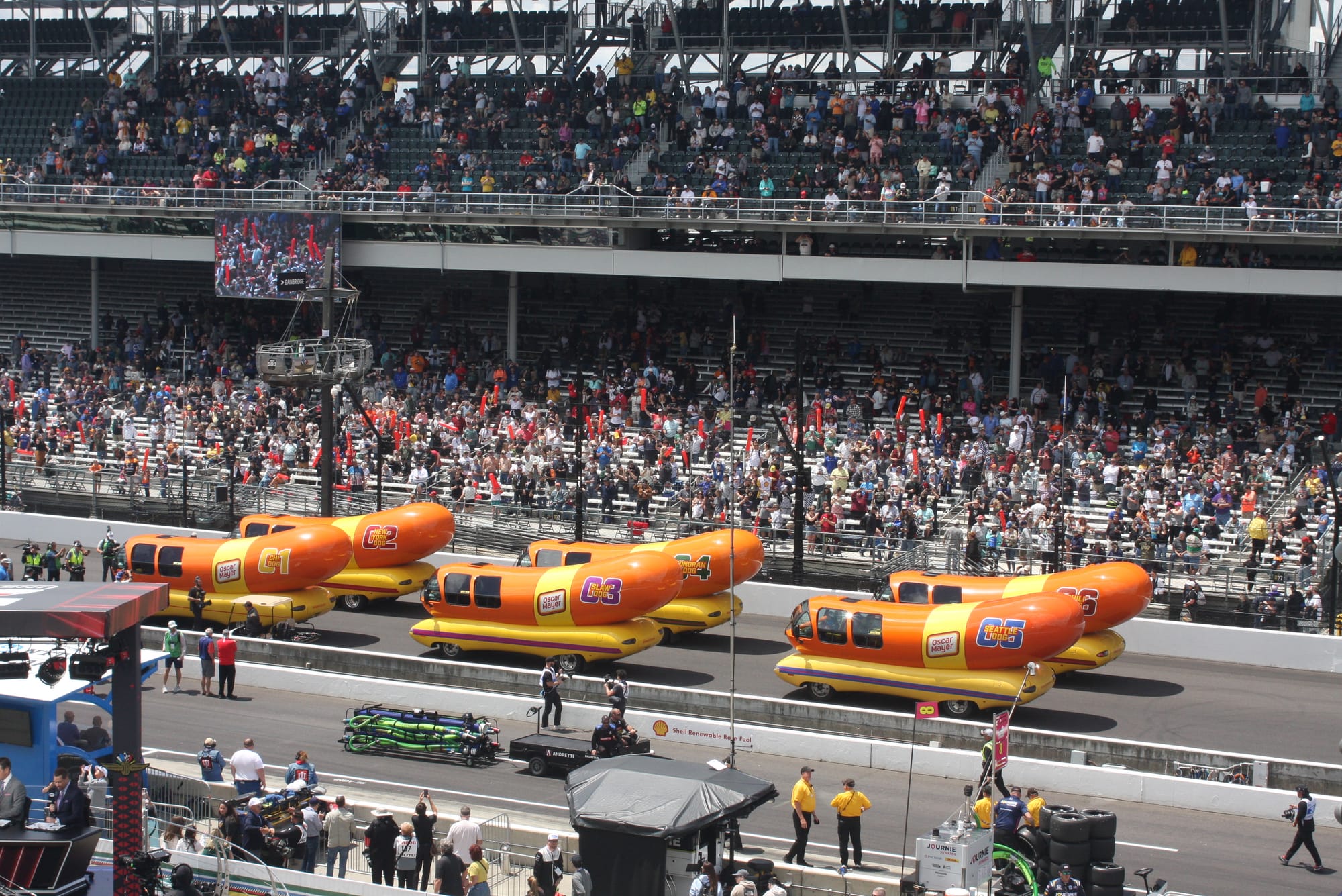 The Wienie 500 saw six Wienermobiles – historic mobile hot-dog vendors – take what seemed like an hour to cover two laps of the Speedway.